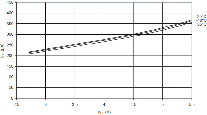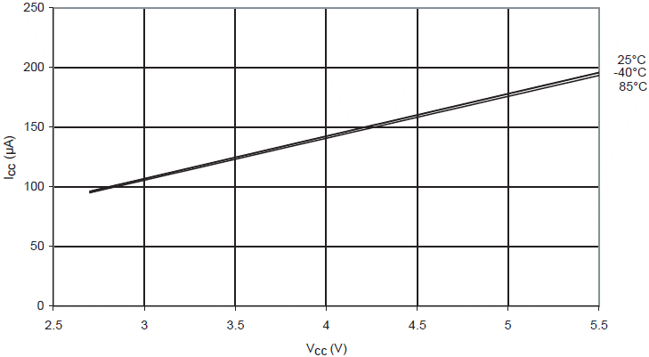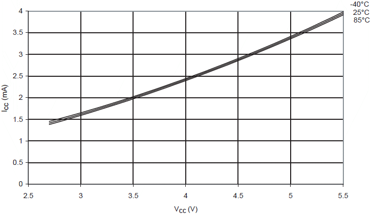 Prąd zasilania w trybie bezczynnym w funkcji VCC