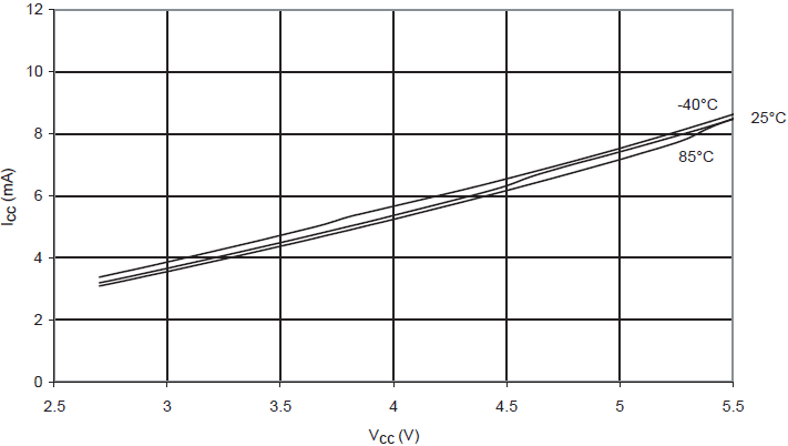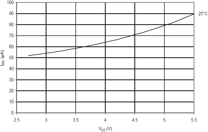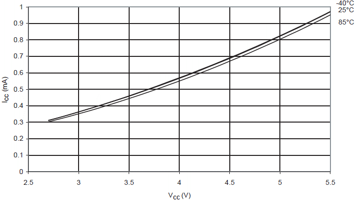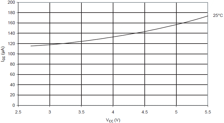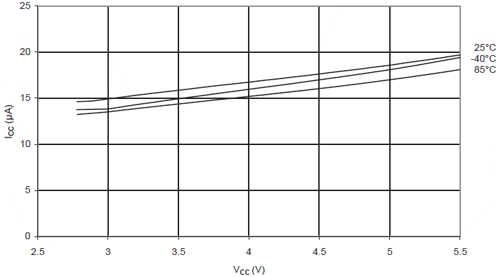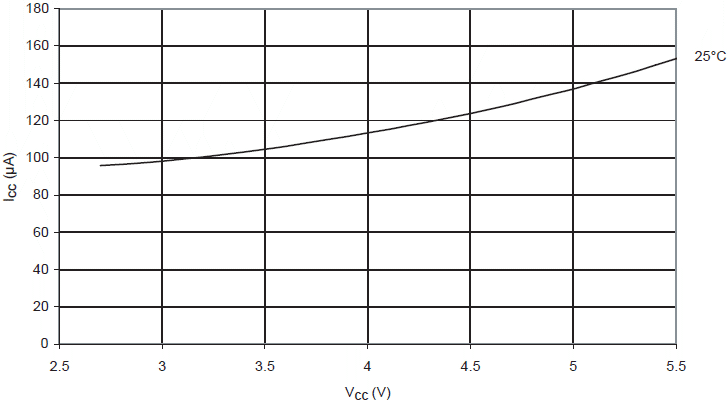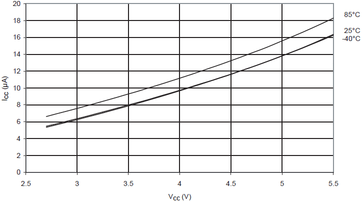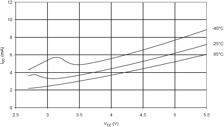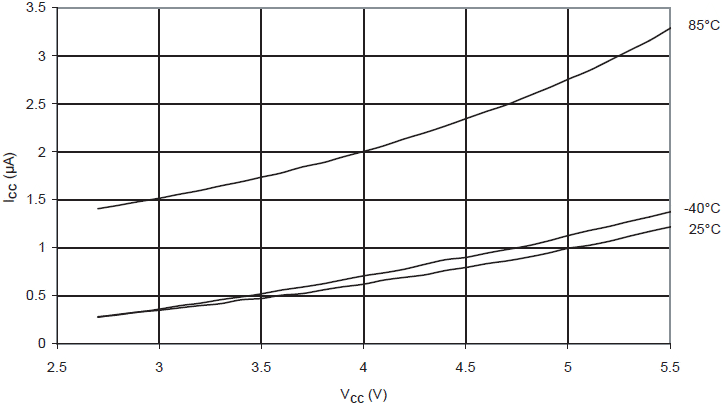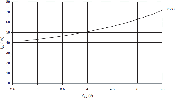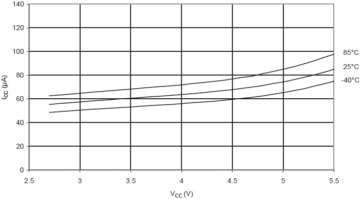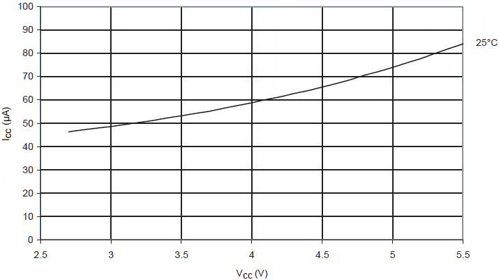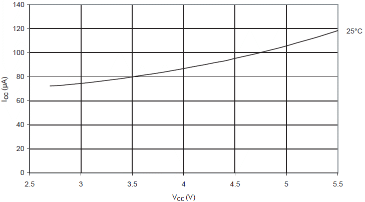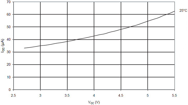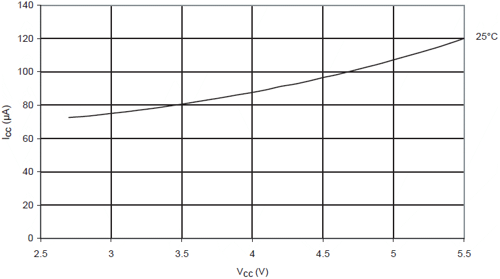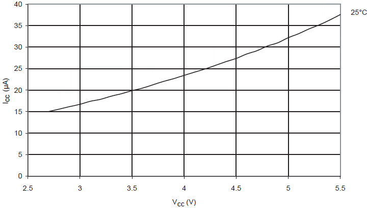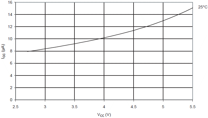 Prąd zasilania w trybie oszczędzania energii w funkcji VCC