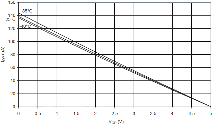 Prąd opornika podciągającego końcówki we/wy w funkcji napięcia wejściowego