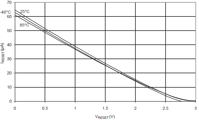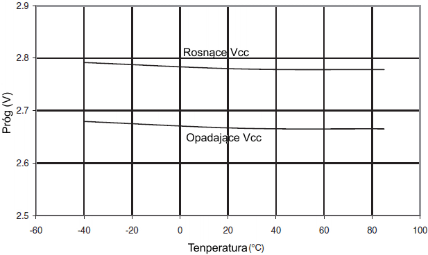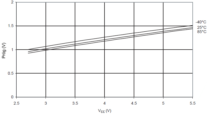 Wejściowa histereza końcówki resetu w funkcji napięcia zasilającego VCC