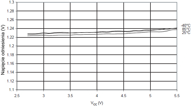 Wewnętrzne napięcie odniesienia w funkcji VCC