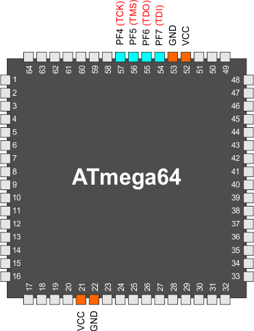 Programowanie mikrokontrolera AVR poprzez JTAG wykonywane jest przy pomocy 4-końcówkowego portu JTAG: TCK, TMS, TDI i TDO. Są to jedyne końcówki, które muszą być sterowane przy wykonywaniu programowania JTAG (dodatkowo do końcówek zasilania). Nie ma potrzeby zastosowania zewnętrznie napięcia 12V. Aby uaktywnić port dostępu testowego JTAG (ang. JTAG Test Access Port), bit bezpiecznikowy JTAGEN musi być zaprogramowany oraz należy wyzerować bit JTD w rejestrze MCUCSR.