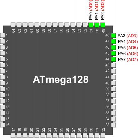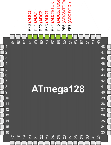 | (0x62) | PORTF7 | PORTF6 | PORTF5 | PORTF4 | PORTF3 | PORTF2 | PORTF1 | PORTF0 | PORTF |
