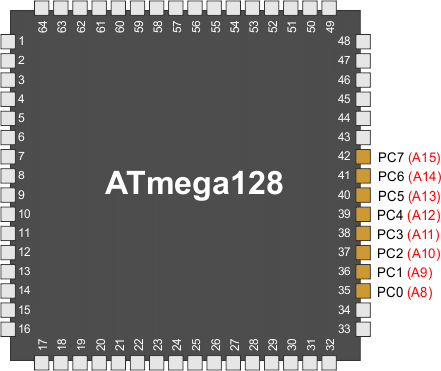 | 0x15 (0x35) | PORTC7 | PORTC6 | PORTC5 | PORTC4 | PORTC3 | PORTC2 | PORTC1 | PORTC0 | PORTC |