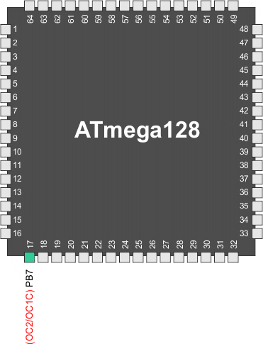 Wyjścia modułów Output Compare (OC1C i OC2) przechwytują zwykły rejestr PORTB7, gdy jeden z nich jest włączony (tj. gdy bity COMnx[1:0] nie są równe zero). Gdy włączone są jednocześnie oba wyjścia OC1C i OC2, włączany jest automatycznie modulator.