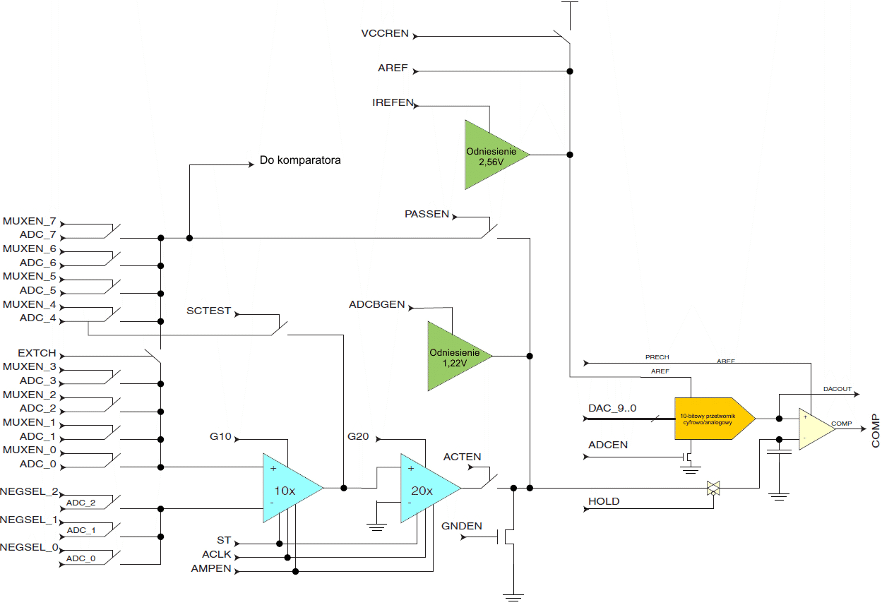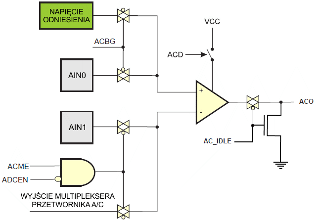 | OCxn | Sterowanie wyjściem końcówki Pxn | WPx | Zapis PORTx | |