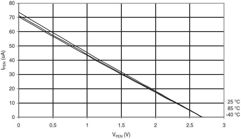 Prąd opornika podciągającego końcówki PEN w funkcji napięcia wejściowego