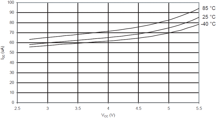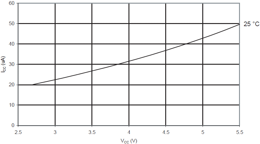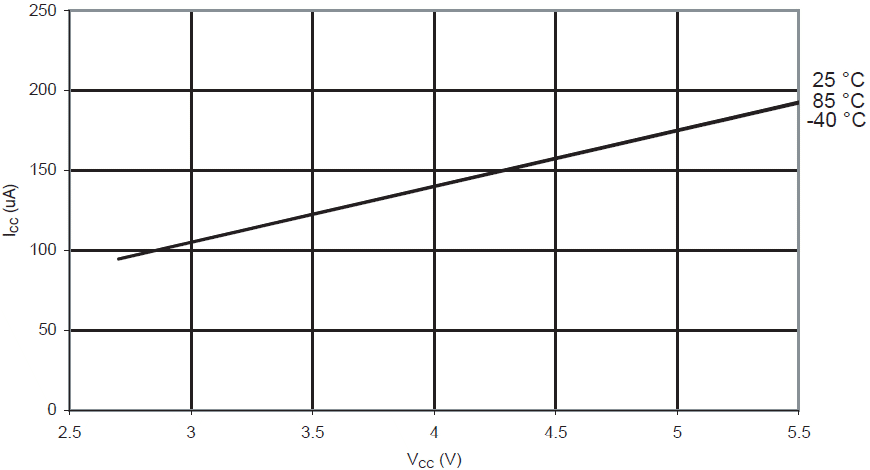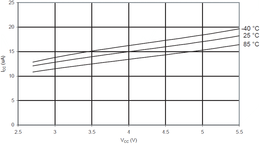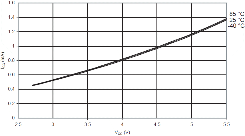 Prąd komparatora analogowego w funkcji VCC