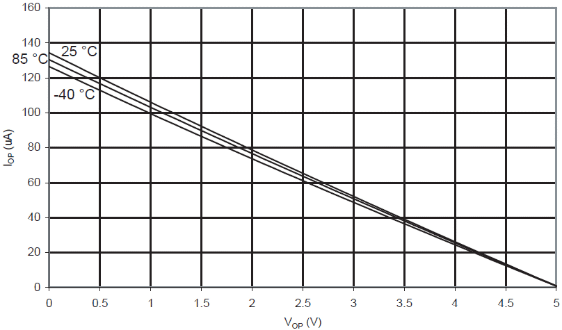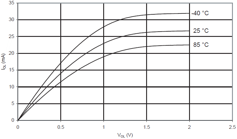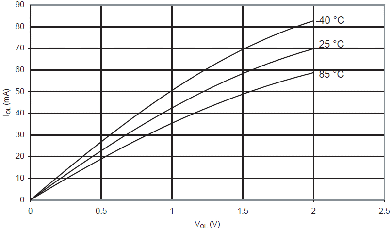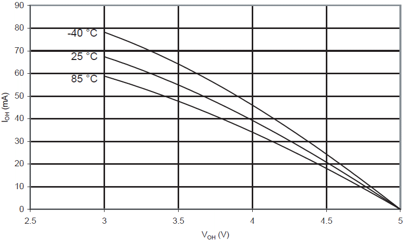Prąd wypływający końcówki we/wy w funkcji napięcia wyjściowego