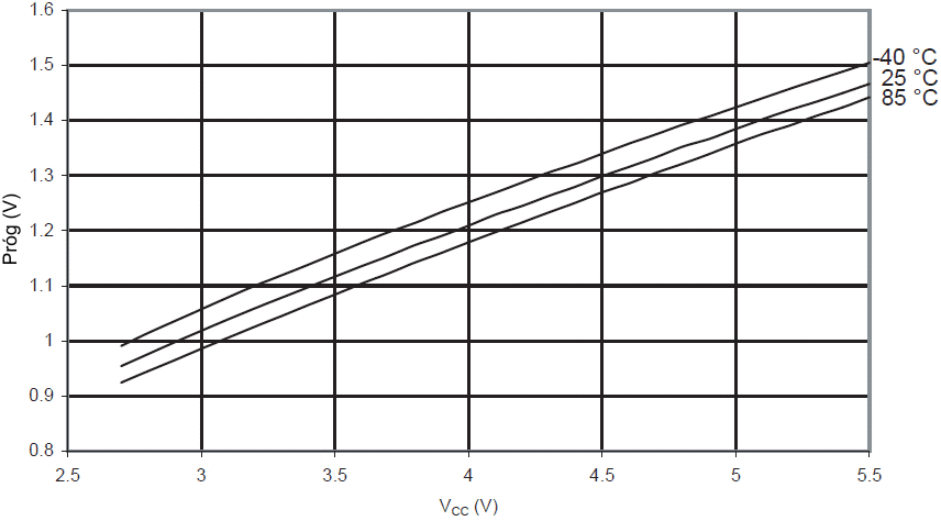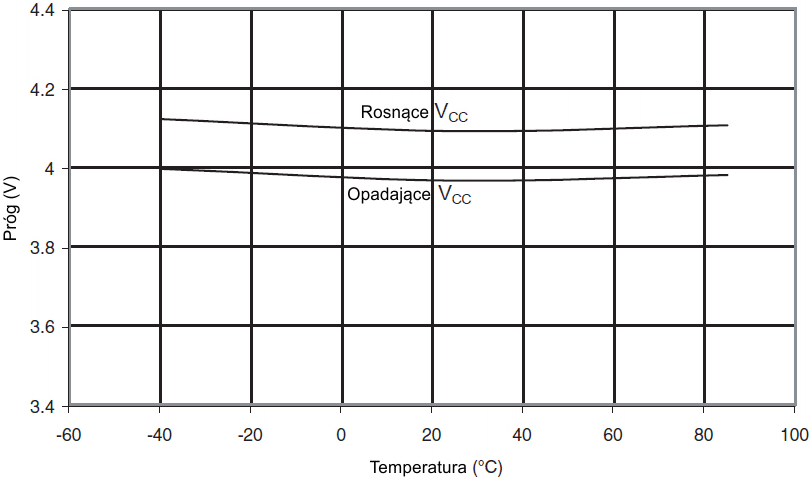 Progi BOD w funkcji temperatury (poziom BODLEVEL wynosi 2,7 V)