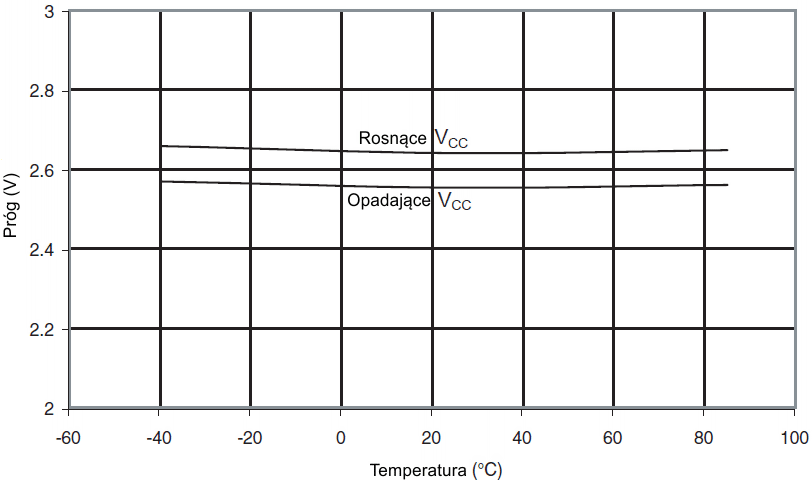 Rys.60 Wejściowe napięcie progu RESET w funkcji VCC