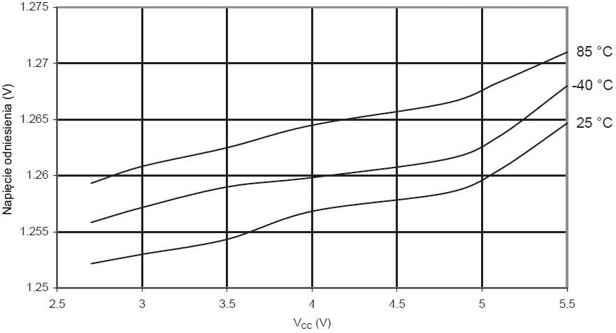 Wewnętrzne napięcie odniesienia w funkcji VCC