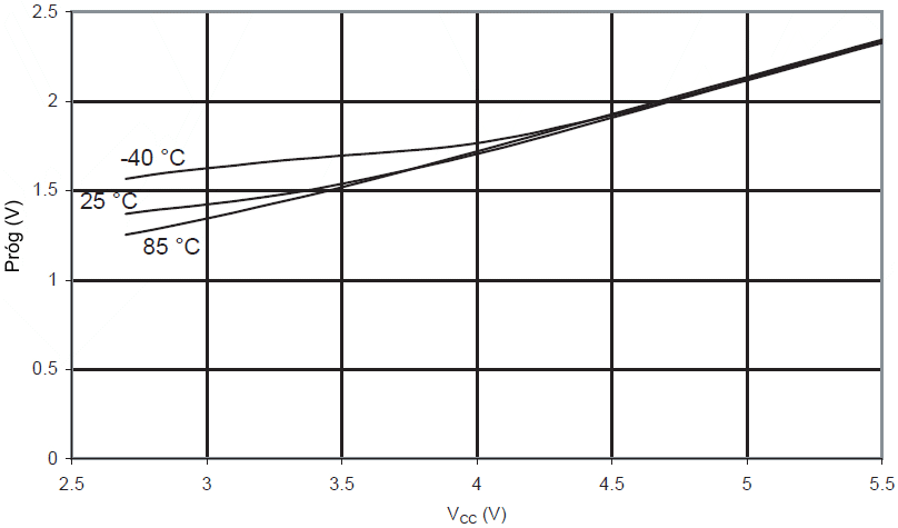 Rys.61 Wejściowe napięcie progu RESET w funkcji VCC
