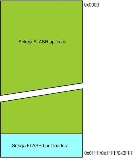 W rozdziale "Programowanie pamięci" znajdziesz szczegółowy opis szeregowego ładowania programu do pamięci FLASH za pomocą końcówek interfejsu SPI (ang. Serial Programming Interface) lub trybu programowania równoległego.
