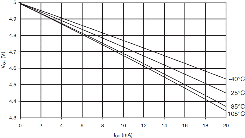 Rys.70 ATmega48PA: Napięcie wyjściowe końcówki we/wy w funkcji