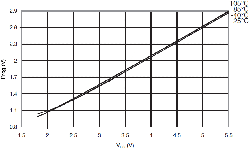 Rys.91 ATmega48PA: Prąd programowania w funkcji VCC