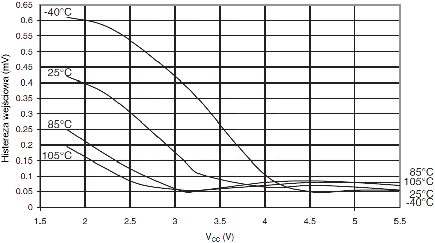 Rys.74 ATmega48PA: Histereza wejściowa końcówki we/wy w