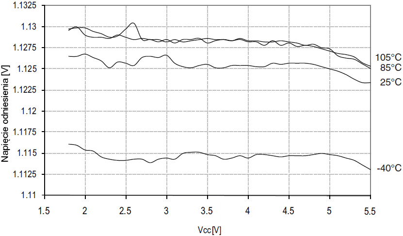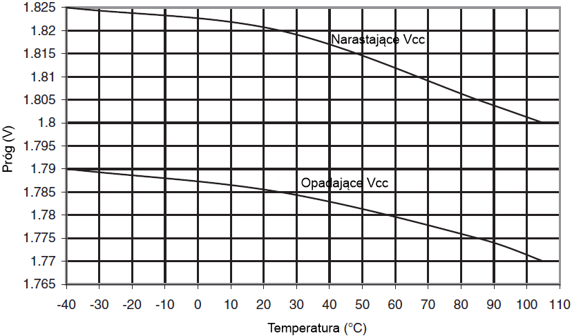Progi BOD w funkcji temperatury (BODLEVEL wynosi 1,8V)