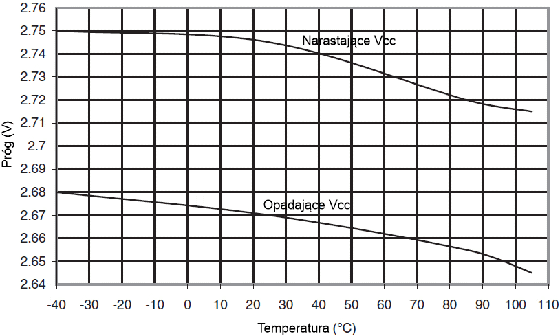 Progi BOD w funkcji temperatury (BODLEVEL wynosi 2,7V)