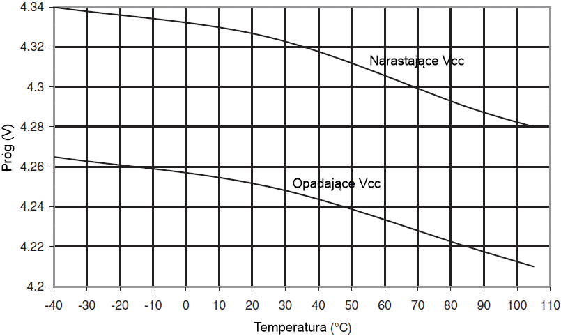 Progi BOD w funkcji temperatury (BODLEVEL wynosi 4,3V)