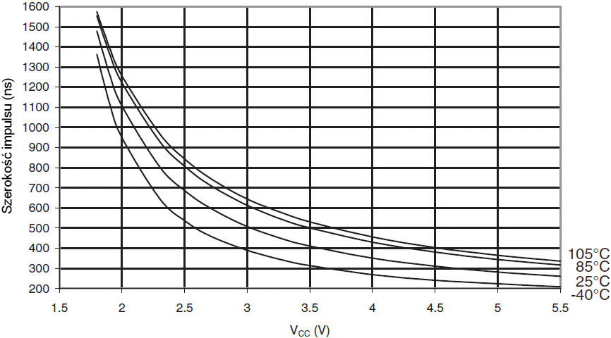 Rys.94 ATmega48PA: Minimalna szerokość impulsu resetu w