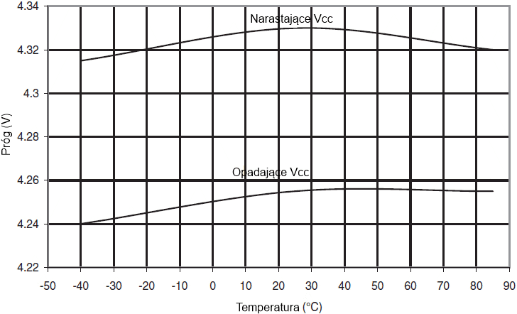 Progi BOD w funkcji temperatury (BODLEVEL wynosi 4,3V)