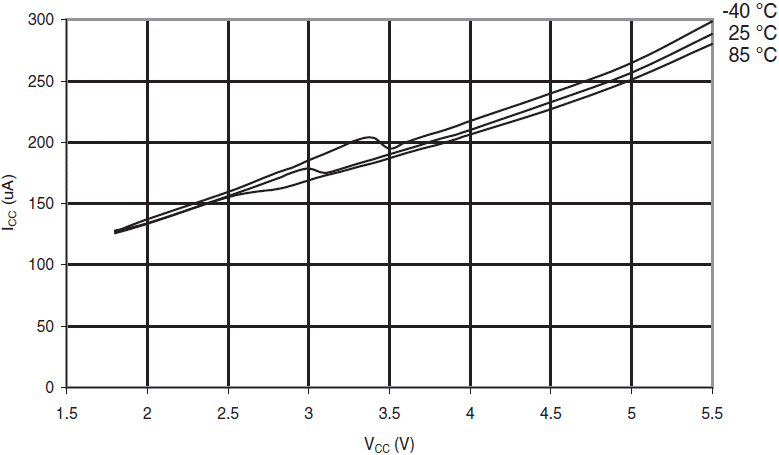 Rys.135 ATmega88A: Prąd komparatora analogowego w funkcji VCC
