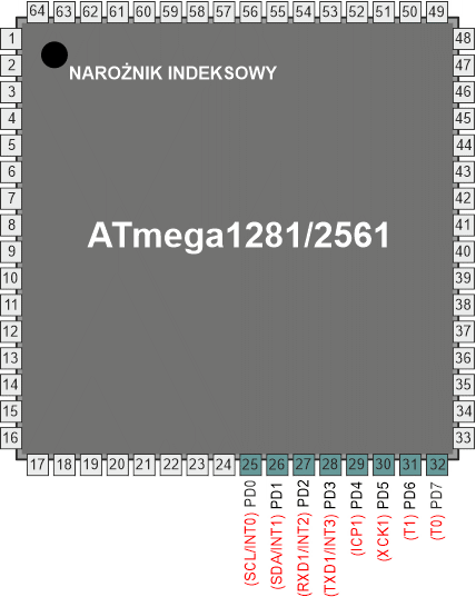 | DI | Wejście PCINT12 | Wejście PCINT11 Wejście XCK3 |