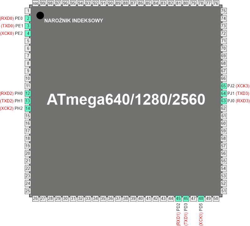 | Adresy poniżej | RXCn | TXCn | UDREn | FEn | DORn | UPEn | U2Xn | MPCMn | UCSRnA |