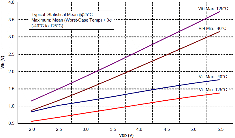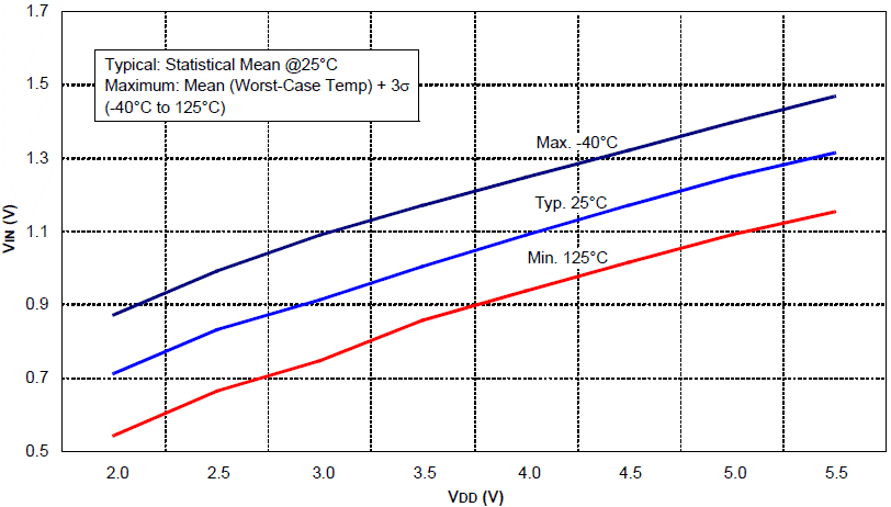 13-12 Próg wejściowy TTL VIN w funkcji VDD