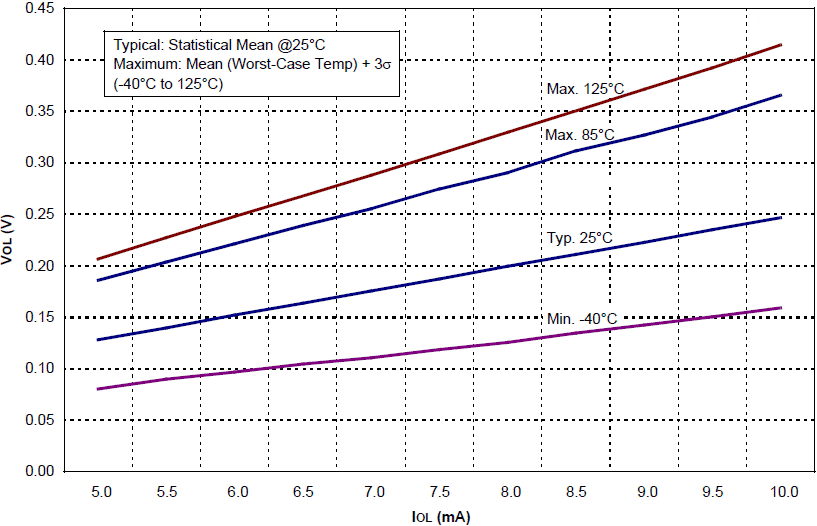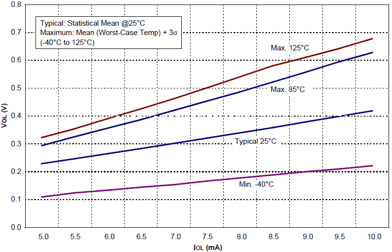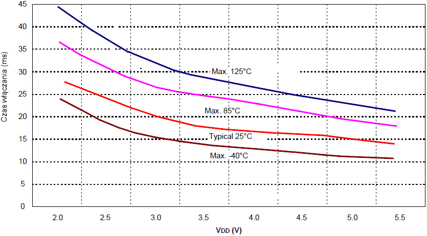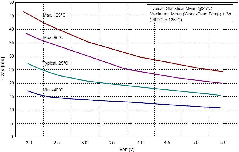 | Typical: Średnia Statystyczna przy 25°C Maximum: Średnia(Temperatura w Najgorszym Przypadku) + 3σ (-40°C do 125°C) |
