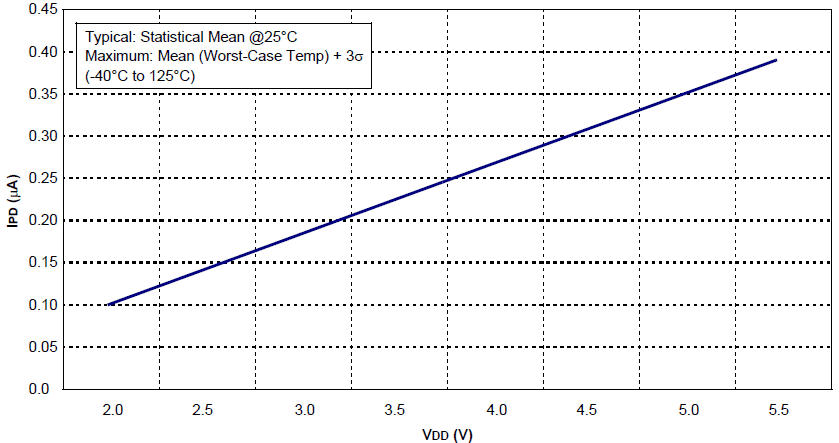 Typowy prą IPD w funkcji VDD (tryb