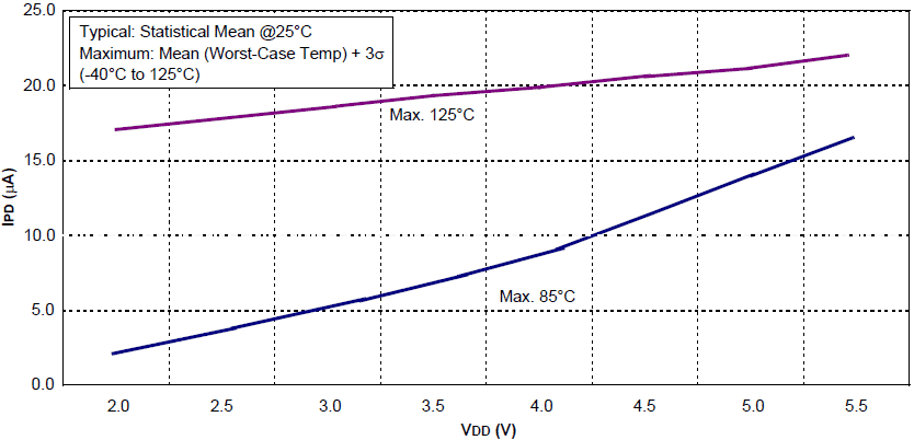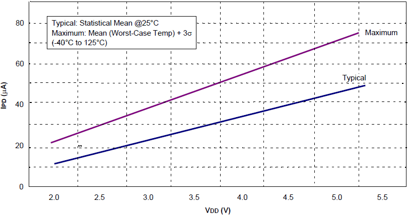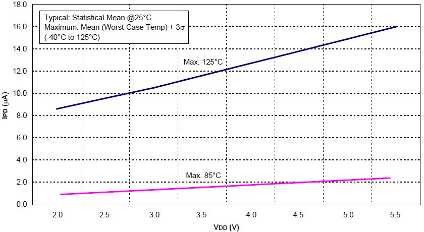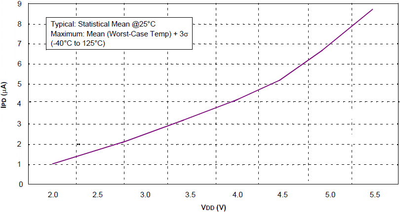 13-5 Typowy prąd IPD WDT w funkcji VDD