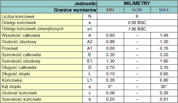 6-końcówkowa SOT-23![]() |