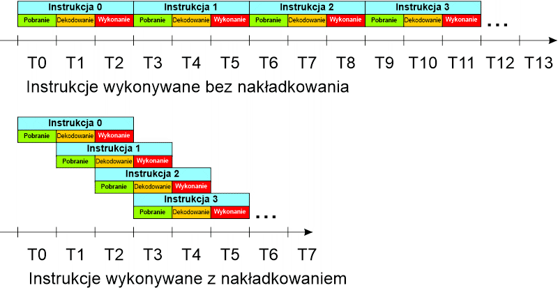 Procesor PIC jest procesorem RISC (ang. Reduced Instruction Set Computer – komputer o zredukowanej liście rozkazów). Dzięki temu procesor działa bardzo szybko, rozkazy są wykonywane co jeden takt zegara – w rzeczywistości taktów jest więcej (pobranie, dekodowanie i wykonanie), lecz PIC stosuje nakładkowanie (ang. pipelining): polega to na tym, iż rozkazy są dekodowane i wykonywane w trakcie pobierania następnego rozkazu. Poniższy rysunek wyjaśnia ideę nakładkowania: