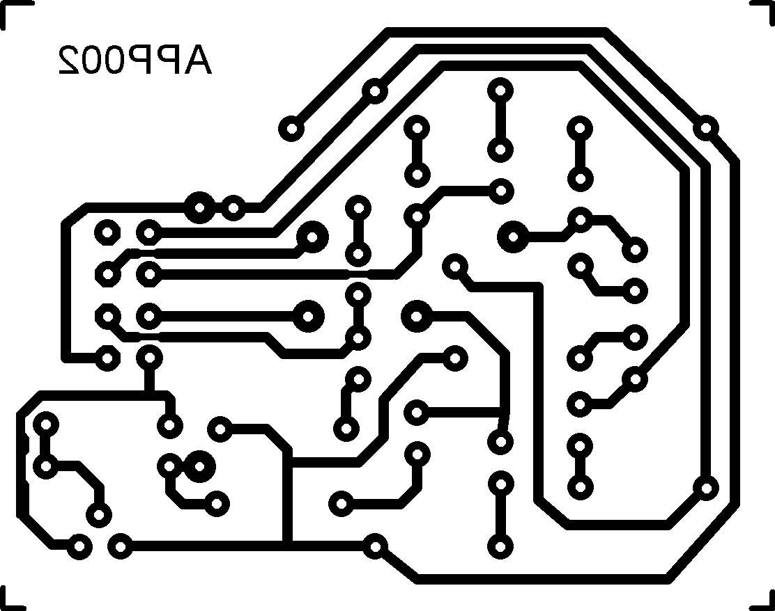 Płytka aplikacyjna APP002 z diodami ustawionymi w kołoCiekawe efekty świetlne uzyskamy, jeśli diody LED na płytce APP002 będą ustawione w koło. Sam schemat elektryczny nie ulega zmianie. Modyfikacji wymaga tylko płytka PCB.