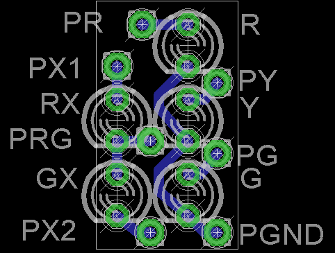 Po przylutowaniu przewodów zetnij ich końcówki od strony zewnętrznej i płytkę delikatnie przeszlifuj drobnym papierem ściernym, aby nic nie wystawało z jej powierzchni. Przylutuj diody LED. Diody do sygnalizacji dla samochodów przylutuj normalnie, natomiast diody do sygnalizacji dla pieszych przylutuj pod katem prostym, jak na poniższym zdjęciu.