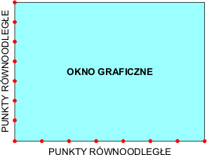 Wzory te umożliwią nam przeliczenie współrzędnych punktów wykresu na współrzędne punktów wierzchołkowych łamanej w obszarze graficznym okna.