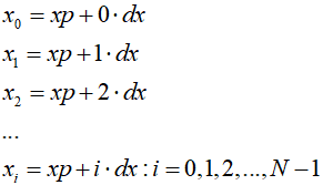 x[i] = xp + i * dx;