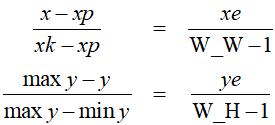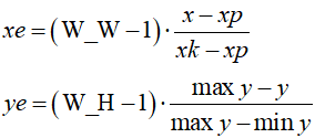 p[i].x = (W_W - 1) * (x[i] - xp) / (xk - xp);