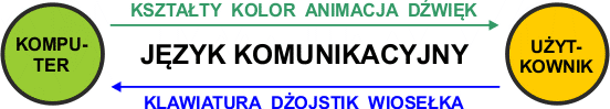 Przedyskutowaliśmy pewną liczbę cech i urządzeń, które wzięte razem składają się na elementy języka interakcji pomiędzy komputerem a użytkownikiem. Wygląda to następująco:
