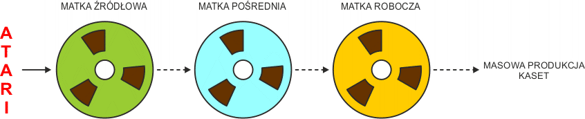 Duplikator utworzy ze źródłowej taśmy matki roboczą taśmę matkę do końcowej produkcji masowej kaset. Końcowy produkt będzie trzecią generacją oryginału. Oto przebieg tego procesu: