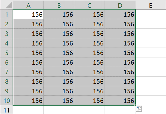 Zwolnij lewy przycisk myszki. Obszar objęty kursorem zostanie wypełniony liczbą 156: