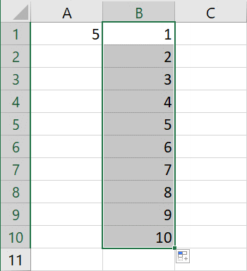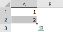 Często występuje sytuacja, gdy kolejne komórki w kolumnie lub w wierszu należy wypełnić wartościami tworzącymi pewien ciąg arytmetyczny , np. 1, 2, 3, 4, 5, ... Procedura jest następująca: