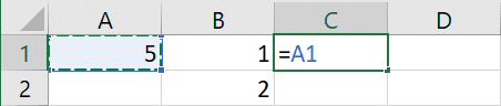 Utwórz nowy arkusz. Do komórki A1 wpisz liczbę 5: