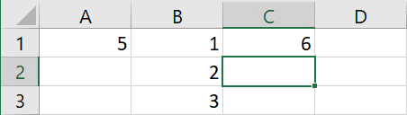 Wciśnij klawisz Enter. Arkusz wyświetli wynik formuły, czyli sumę 5 + 1 = 6: