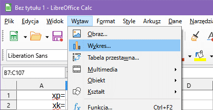 Z menu wybierz opcję Wstaw → Wykres...: