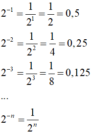Potęga 2 o wykładniku ujemnym jest ułamkiem: