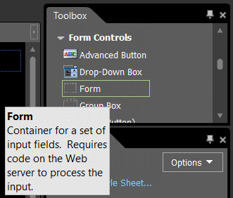 Wróć do trybu Design i umieść kursor w wyrazie tutaj. U góry okna edytora masz trzy znaczniki: