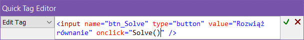 Zostanie uruchomiony edytor szybkich tagów (ang. Quick Tag Editor):